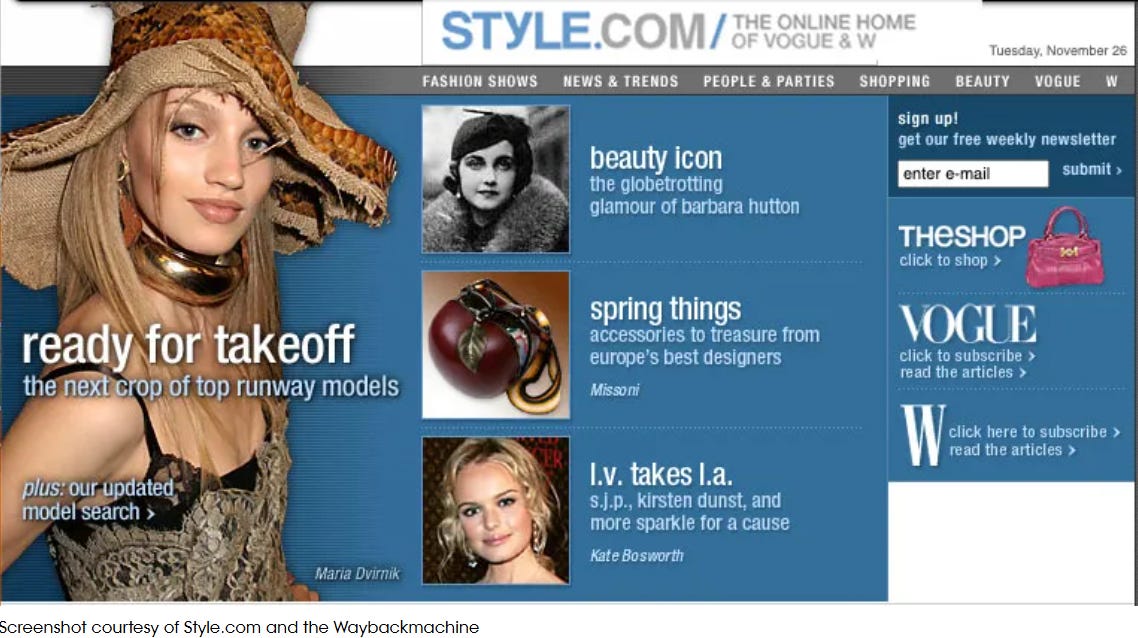 Vogue Runway (officially launched in September, 2000 as Style.com) is “fashion’s most complete 21st century archive.” I would love to see this archive’s 25th anniversary celebrated at NYFW in September.